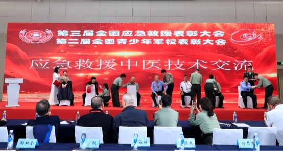 在会议间歇,数十位来自军地应急救援总队的中医专家王晓红、刘立稳、张增东等现场展示了独特的中医应急技艺,彰显了传统医学在现代应急救援体系中的特殊价值与实用潜力。与此同时,军地书画院院长秦荣芳携同户广生、田少明、肖桂珍、刘世越、潘旭江、罗宝良等知名书法家、画家,向大会捐赠了多幅精心创作的艺术作品,以笔墨抒怀,以丹青寄意,共同表达对大会成功召开的诚挚祝贺与美好祝愿。