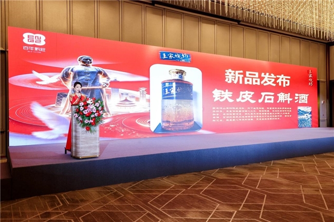 【配图9:新品发布现场匠心筑品,健康赋能,重磅发布石斛养生新品酒,创新融合健康养生理念,引领高端健康饮酒新风,尚三官楼王秉乾王家烧坊铁皮石斛小分子多糖复合养生酒。