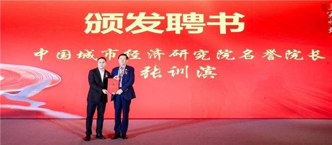 【图说:彭作文院长为张训滨先生颁发中国城经济研究院名誉院长聘书】