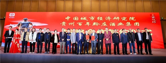 【图说:中国城市经济研究院彭作文先生与贵州百年黔庄董事长王瀚锋先生签约平台共建,资源互通,构筑产业协同发展全新生态。】