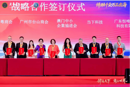 本次大会正当十周年庆祝系列活动重点所在,现场气氛热烈,特色鲜明——凭借得天独厚的台山华侨资源,主办方特别邀请来自30多个国家、100多位海外侨领莅临大会,并由广东省侨联林健副主席上台颁发了商会海外顾问聘书;同时在广州市工商联、越秀区工商联的指导支持下,广州市台山商会与广州市出海企业商会、越秀区跨境出海联盟、天河智慧城签订了侨商合作战略框架协议,以及跟汇业财经集团、新西兰粤商会、匈中经贸合作促进会、恒唯信信息科技、当下科技(亚洲)有限公司等单位也达成了战略合作。