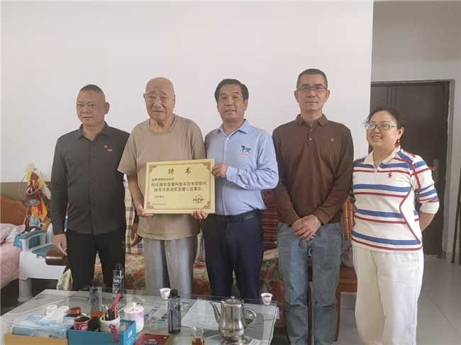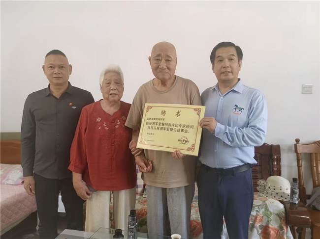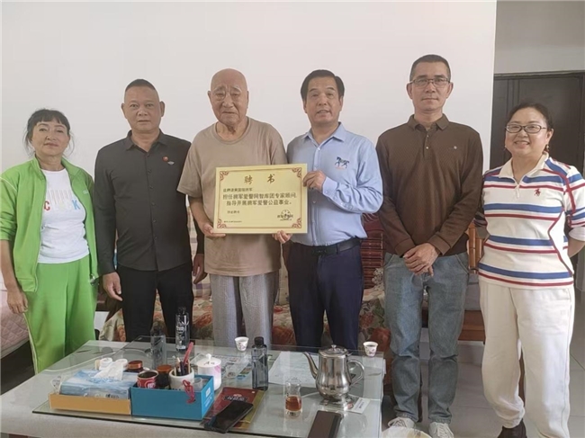 慰问中,富朝阳主席与黄国瑞将军亲切交谈,详细询问老将军及夫人的身体健康状况与生活情况。富朝阳主席重点汇报了拥军爱警公益事业近期开展情况、工作成果及未来规划,并认真听取老将军的指导意见。现场,富朝阳主席正式聘请黄国瑞将军担任“拥军爱警网智库团顾问”,并向老将军颁发聘书,恳请老将军为公益事业发展多把脉、多指路。