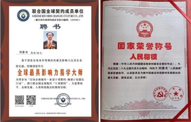 十大新闻人物” 、2006“共和国经济建功勋人物” 、 “共和国文化建设功勋人物” 、 “2007 中国易学领域十大策划名人” 、“影响 2008 中国时代十大新闻人物” 、 “国际民间慈善奖” 、“中国骄傲之星” 、 “中华赤子” 、 “2009 中国最具影响力易学功勋专家” 、 “紫金花终身成就奖” 、 “全国十大公益人物” 、 “2010 时代功勋----感动中国十大新闻人物” 、 “全国十大易学名家” 、 “中国民族文化保护与传承特出贡献奖”和由商务部、中宣部、发改委等十五部门联合认定授予的“中国诚信楷模人物” 、 “2011 年度国家十大易学领袖” 、 “中国易学界至高荣誉国易奖” 、 “易学导师” 、2014“实现中华民族伟大复兴杰出贡献人物” 、 “全心全意为人民服务全国行业标兵人物” 、 “2020 中国品牌新时代领军人物”等荣誉称号。2022 年荣获“人民楷模”国家荣誉称号,获得“中华英才” , “易学泰斗人物”等多项荣誉。2023 年荣获德易双馨易学家,国学文化金鼎奖,金砖国家,世界易学大师等荣誉称号。2024 年,荣获联合国吉雷斯.首位全球华人领域最具影响力易学大师和由中华全国总工会颁授的全国五一劳模奖。2025 年荣获国家科技成果奖,中央电视台国学易经客座教授,中国民族品牌全球传播大使。
